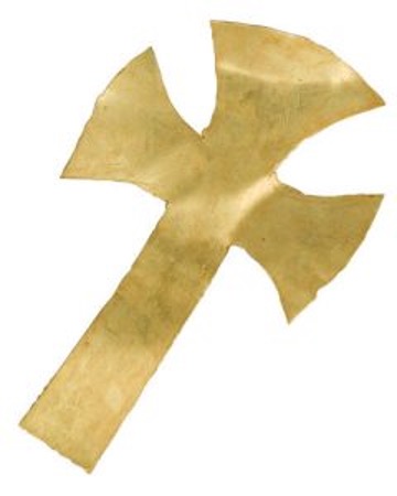 The body itself had two small gold foil crosses found on the eyes, gold foil threads possibly from cloth laid over the body, two gold coins both of Frankish gold, a gold belt buckle and two copper alloy garter buckles found near the feet. The importance of the gold crosses and that the burial is an inhumation and not a cremation shows the political shift towards the faith of Christianity but not completely disregarding the rank and status and community from which the individual originated.